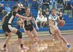 Photo by JOEL TAKARSH/for The Daily Courier, PIC #0484 GP #15 slides into 3rd base Lady Cavers win big 15-0 !