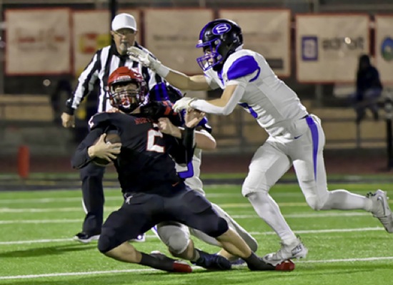 SM #65 brings down from behind NM QB #2 SM #5 (right) assists
