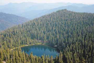 From 6,269 feet, Bolan Lake looks for all the world like a lonely backcountry destination. However, it's home to Bolan Lake Campground and campers can drive all the way. |